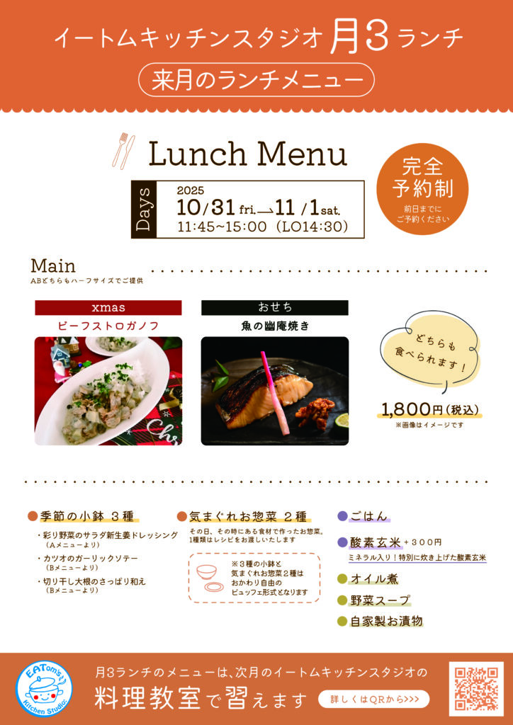 【2025年11月の月3ランチ】10月31日・11月1日(金・土)