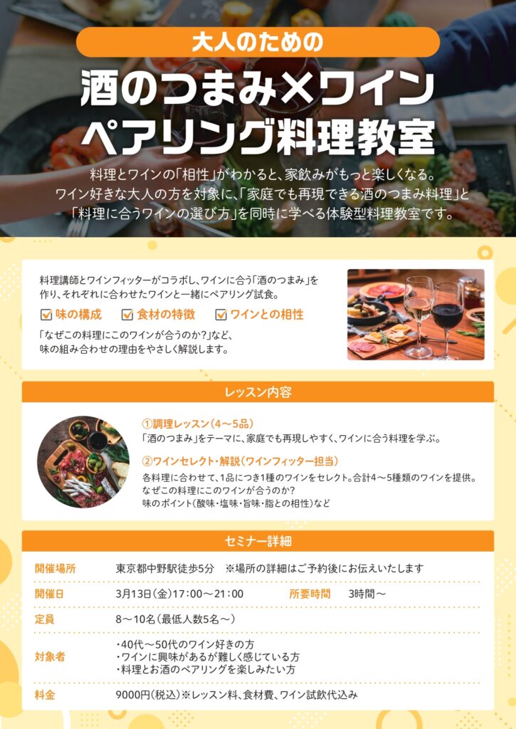 【3/13東京開催】大人のための 酒のつまみ×ワイン ペアリング料理教室